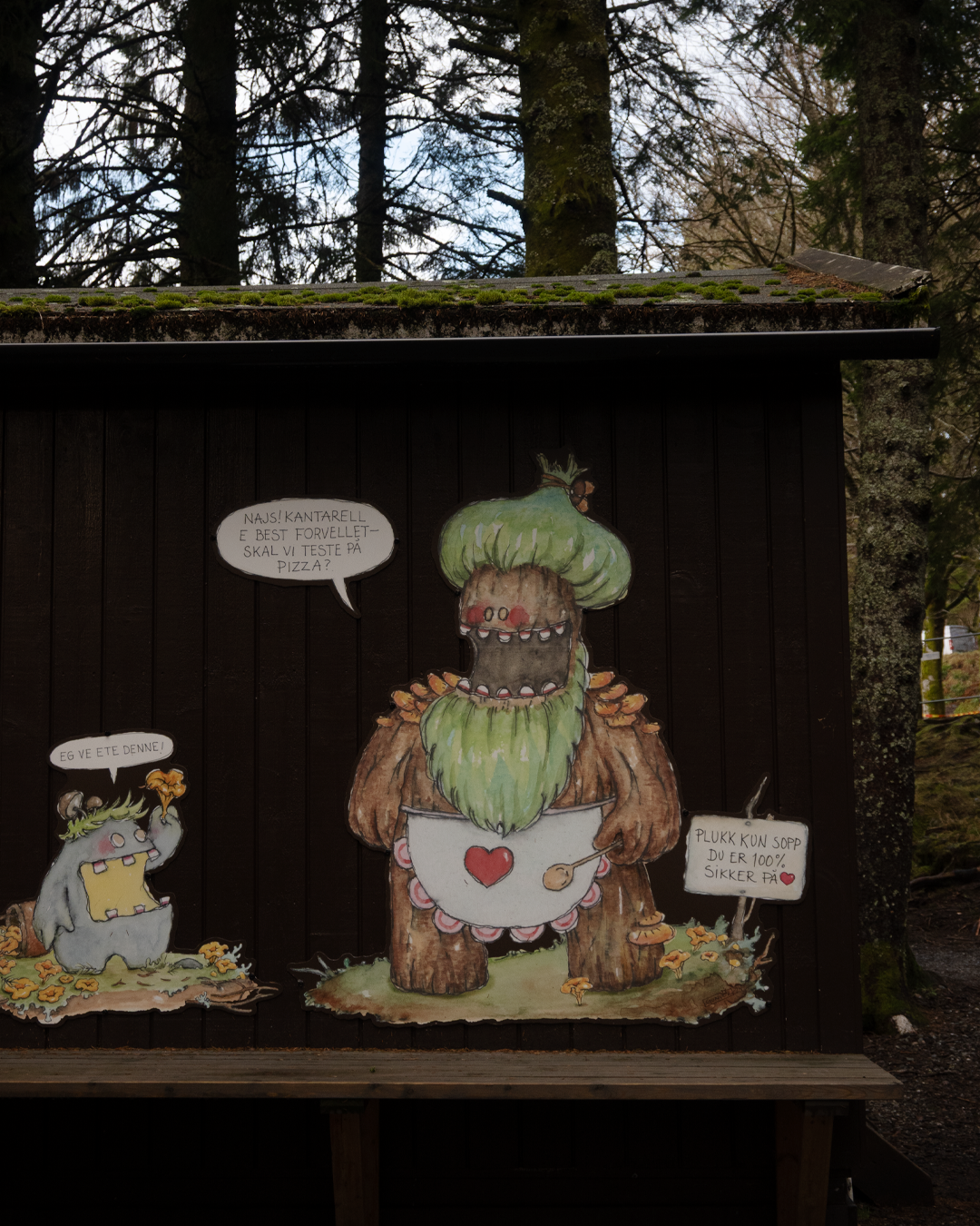 Along with these illustrations you can also find plaques with drawings and info, and follow a trail where you have to answer questions and tick of “geotags” on a printed map that you can get from the Fløyen shop.