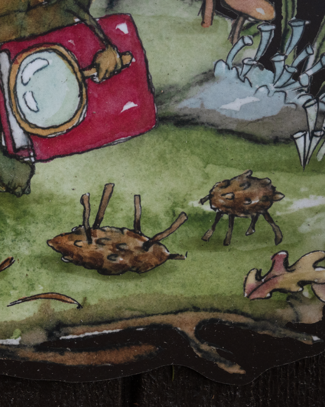 The illustrations are used when teaching visiting classes about the diverse life in the undergrowth at Mt Fløyen, and how we are dependent on the smallest creatures on so many areas of our lives.